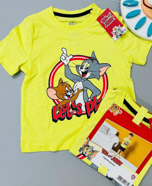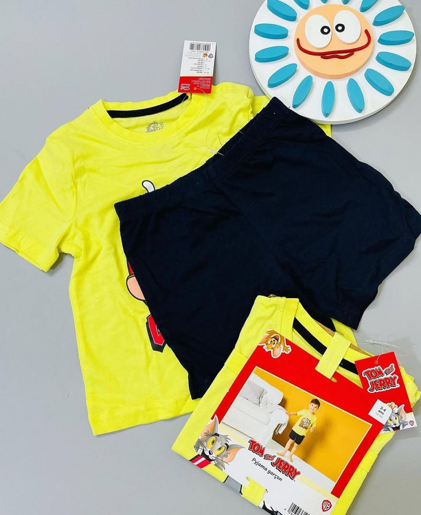 تیشرت زرد و شلوارک سرمه ای