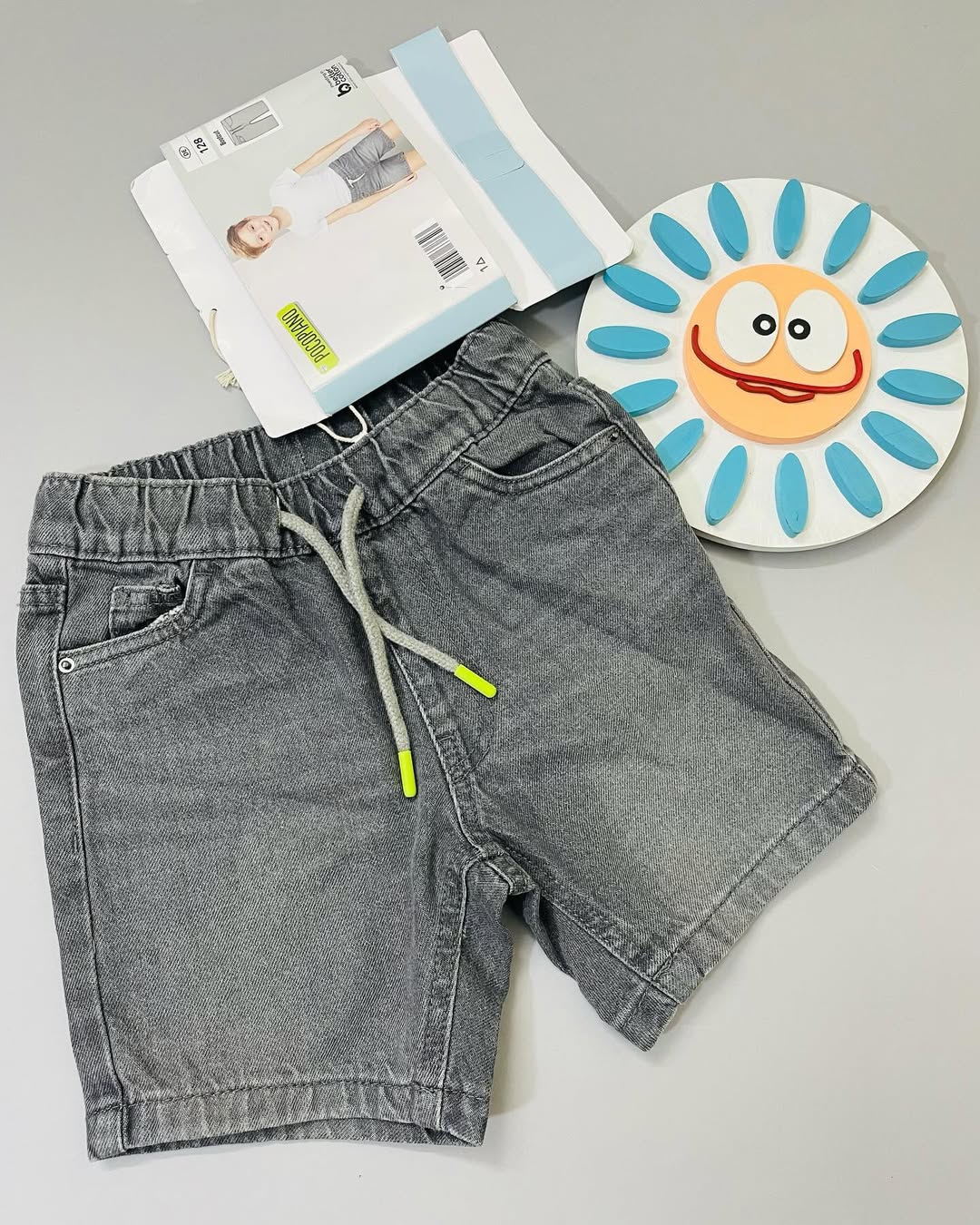 شلوارک جین برند Aldi 🇩🇪 کیفیت عااالی جین کمر کش و بند رنگ دودی . . . مناسب ۶ تا ۷ سال 122 عرض کمر ۲۷ فاق ۲۰ قد ۳۰ .