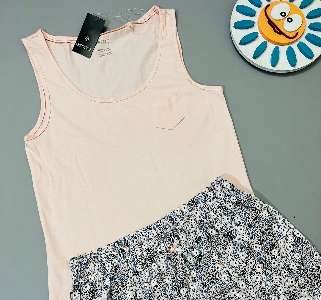 ست شامل تاپ و شلوارک با عرض و قد مشخص، جنس نخ پنبه با کیفیت بی نظیر و ضد حساسیت.