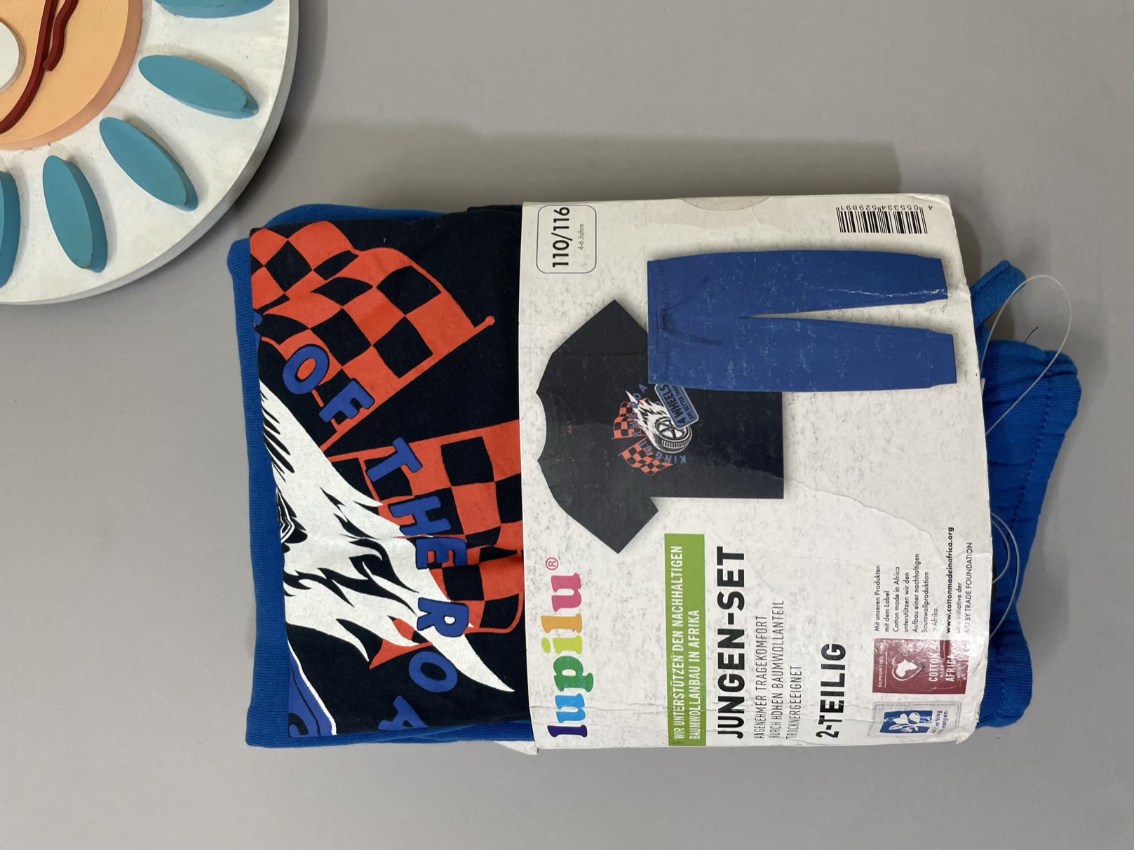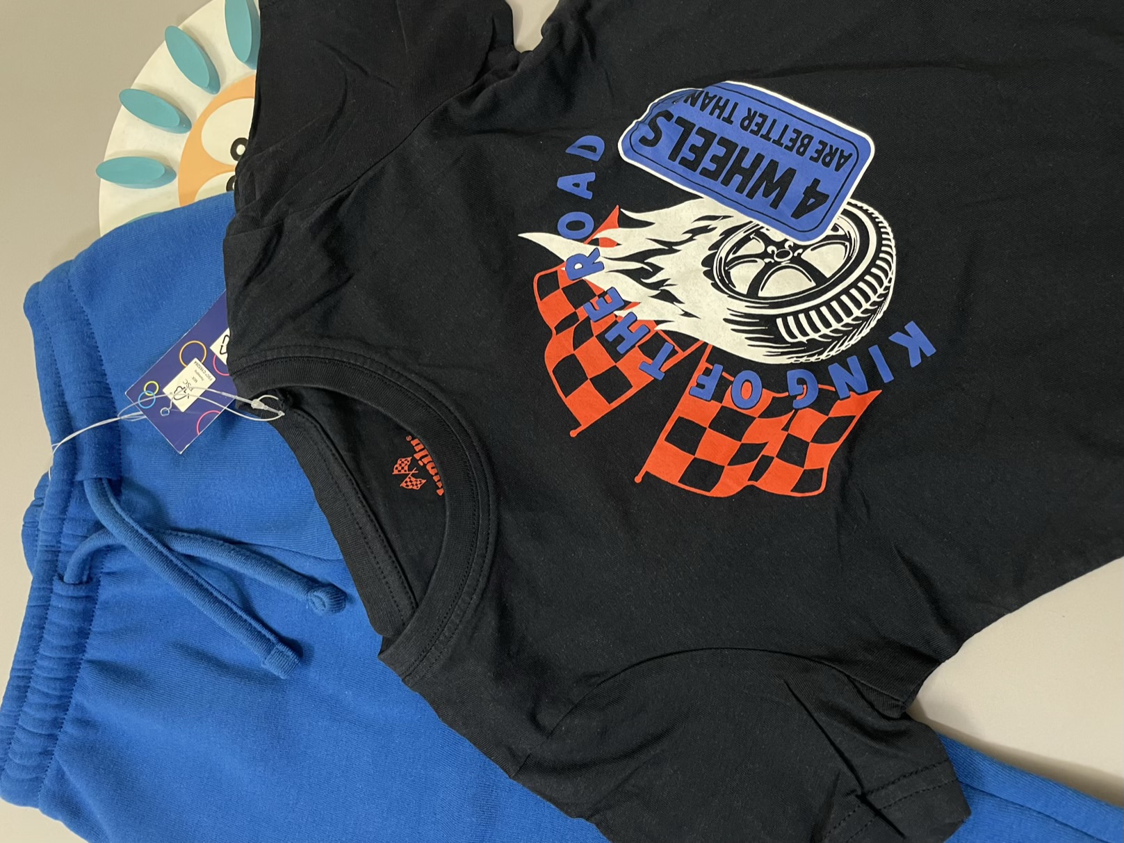 ست پسرانه برند Lupilu آلمان 🇩🇪 تیشرت نخ پنبه عالی شلوار اسلش تو کرکی کمر کش و بند قابل تنظیم . مناسب ۴ تا ۶ سال 110/116 عرض تیشرت ۳۲ قد تیشرت ۴۵ عرض کمر شلوار ۲۶ قد شلوار ۶۳