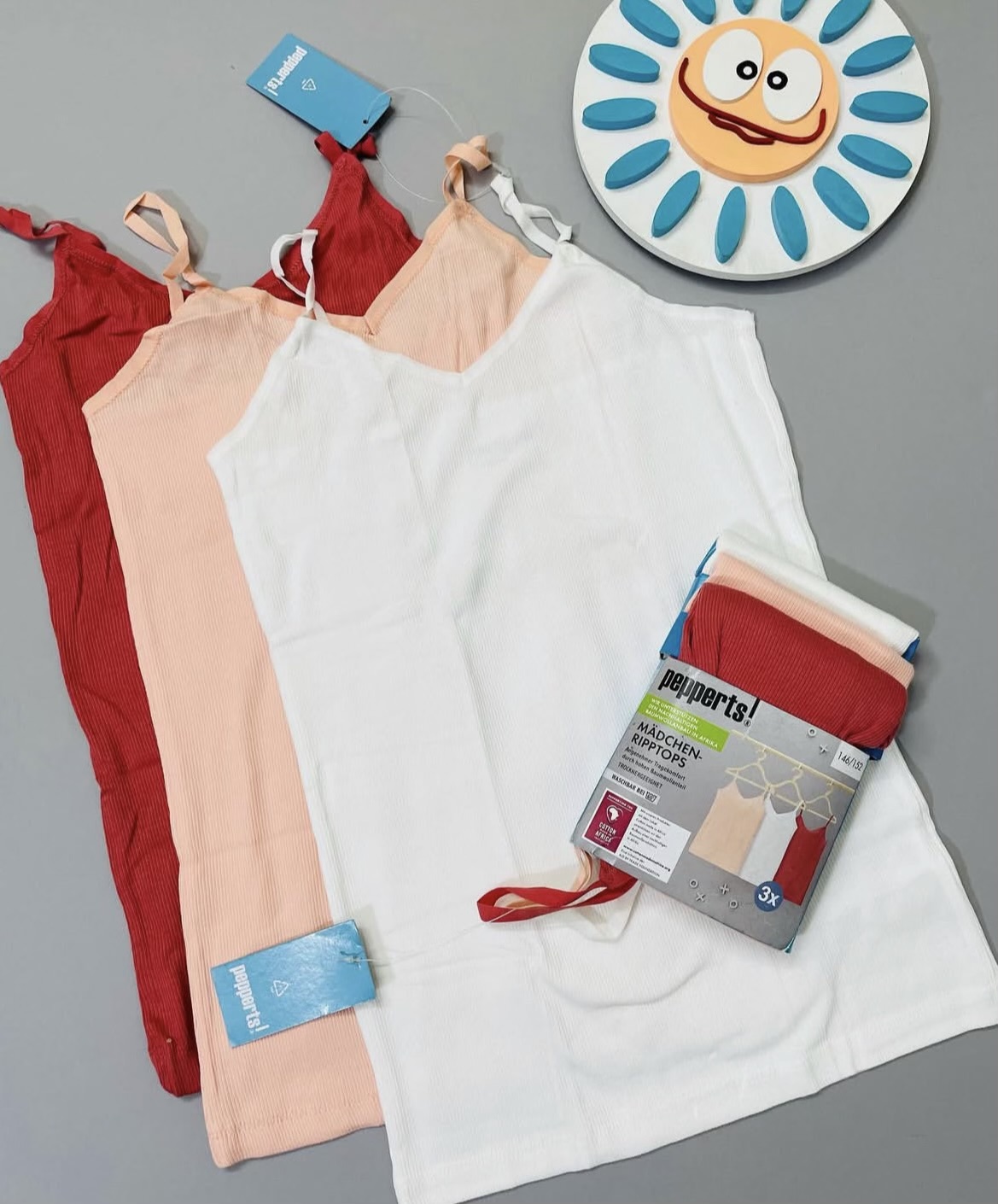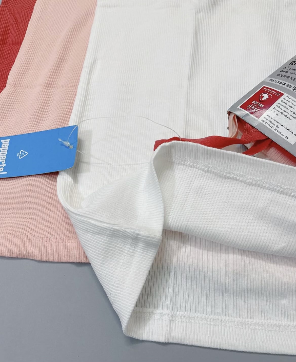 تاپ بندی کبریتی دخترانه پک سه تایی برند Pepperts🇩🇪 کیفیت عاااالی ۹۵ در صد نخ پنبه سفید گلبهی آجری کشسانی داره . . ----------------------------- ۱۰ تا ۱۲ سال 146/152 عرض ۳۰ قد ۵۵ . ---