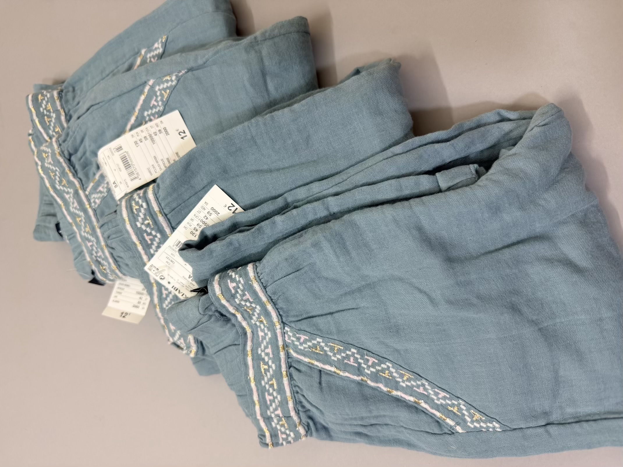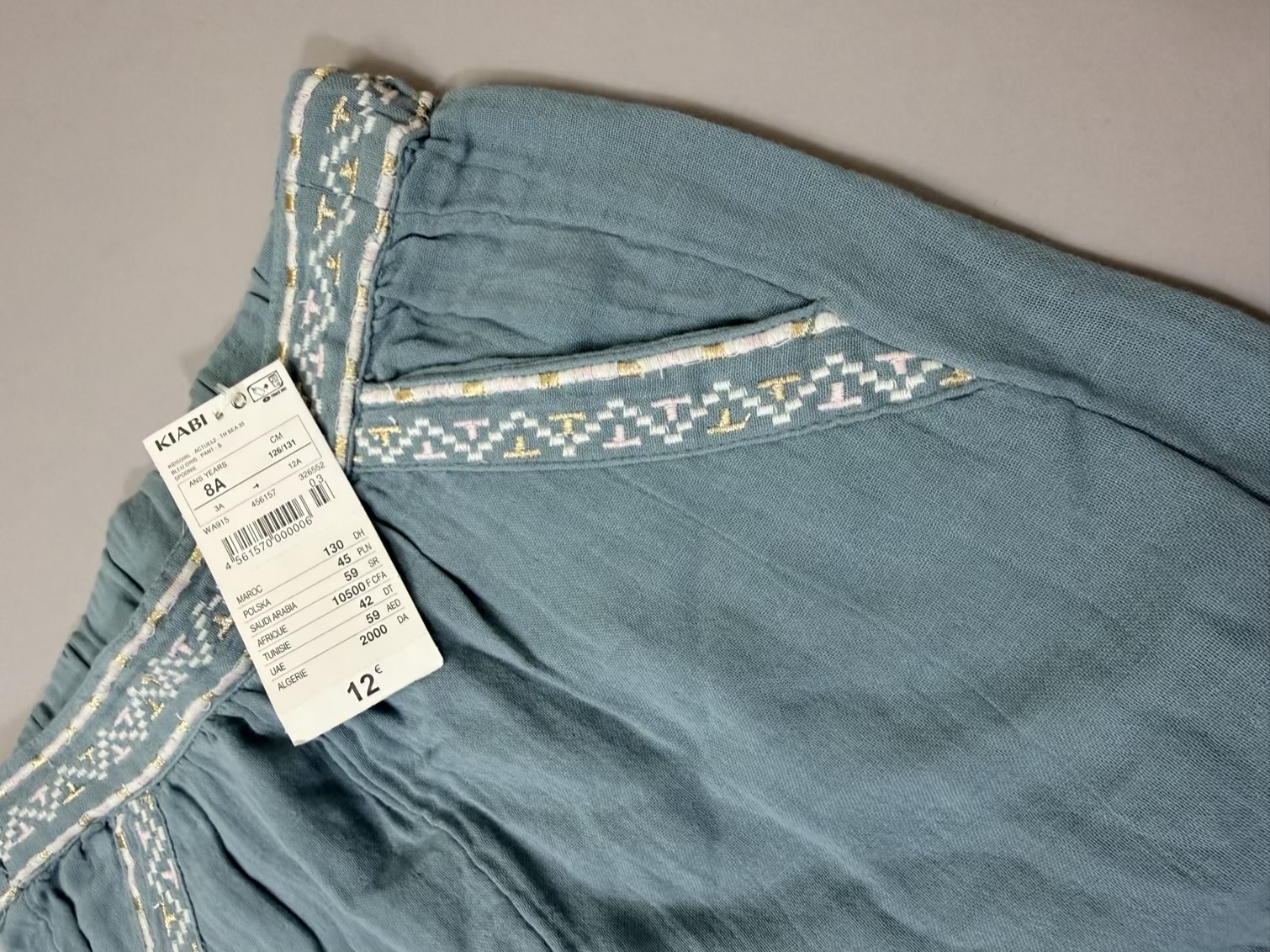 شلوار نخی برند کیابی فرانسه پارچه کشسانی ندارد کیفیت عالی دارای جیب کمر کش مناسب ۸ سال عرض کمر ۲۸ فاف ۲۱ قد شلوار ۷۴ عرض ران ۲۰